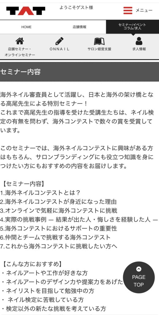 本日のTAT無料セミナーに参加してくださった皆さまへー日本から始める海外ネイルコンテスト・オンラインから広がるネイルアートの世界ー