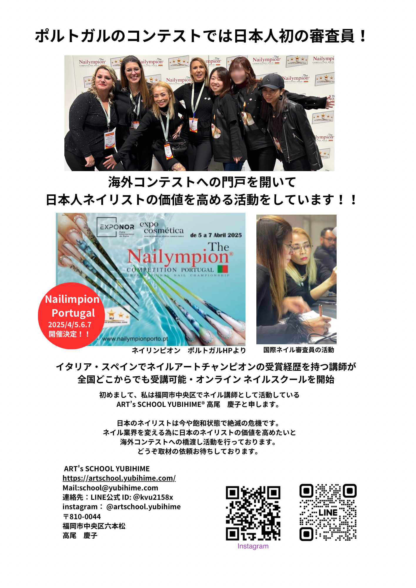※持ち込みできるネイルアートの数には限りがあります。先着順で定員になり次第申し込みを締め切らせていただきます。海外チャレンジコースは受講できますが、来季ポルトガル[2026年4月予定]挑戦になります。